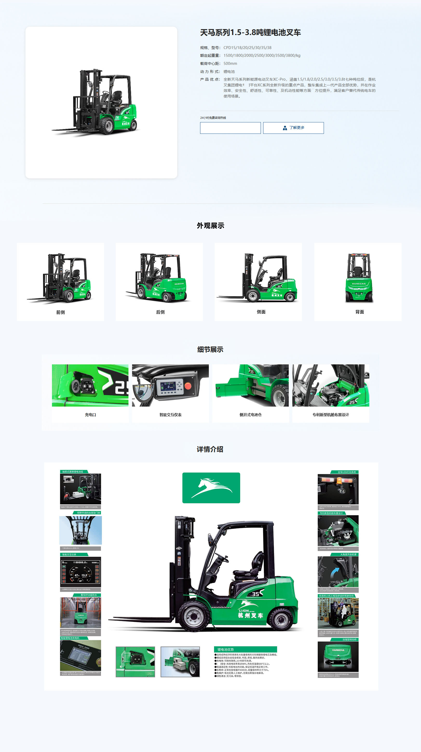 名稱:天馬系列1.5-3.8噸鋰電池叉車